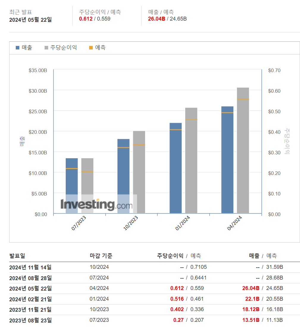 엔비디아의 실적 발표 일정은 주가의 중요한 변수입니다. 2024년 8월 28일(현지 시각) 장 마감 후, 엔비디아는 분기 실적을 발표할 예정입니다.