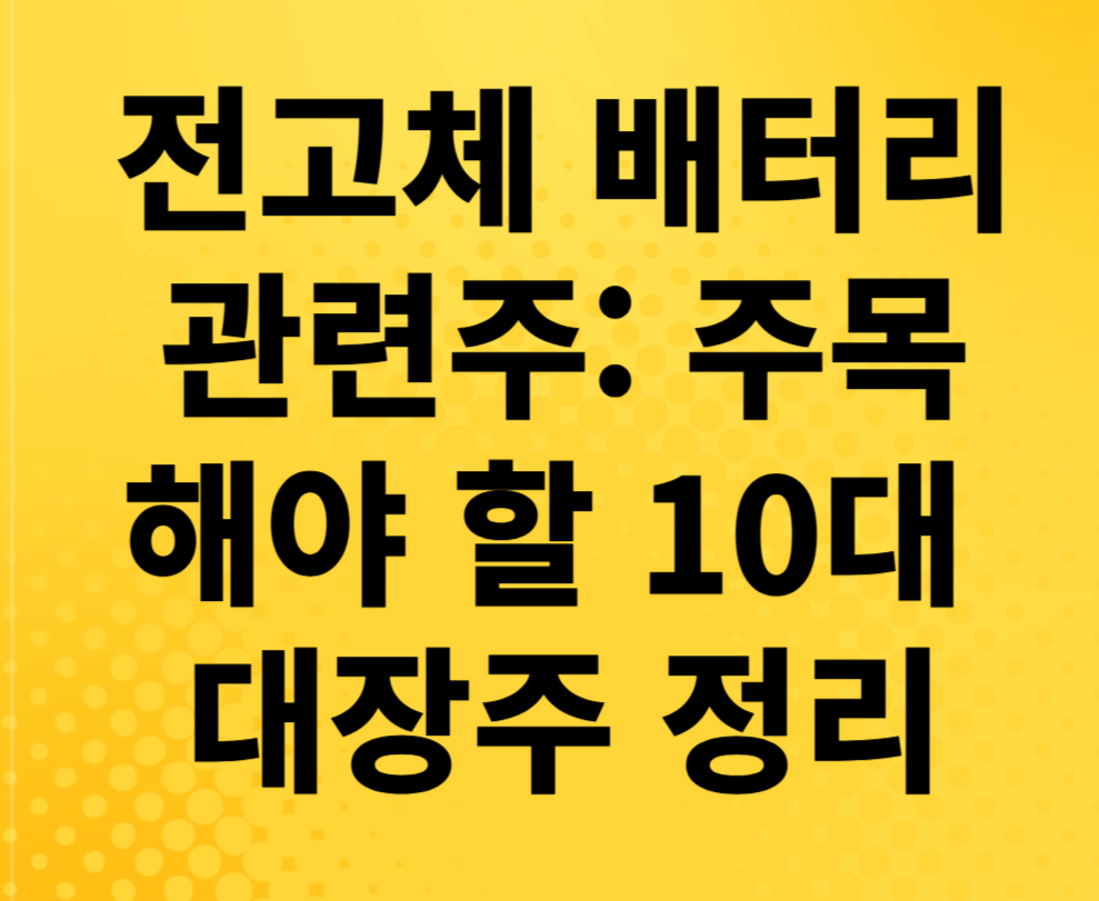 전고체 배터리 관련주는 전기차 산업의 발전과 함께 중요한 투자 기회로 부각되고 있습니다. 기술의 발전과 시장의 필요성이 맞물리며, 소개된 10개의 종목은 앞으로 큰 성장을 기대할 수 있습니다.